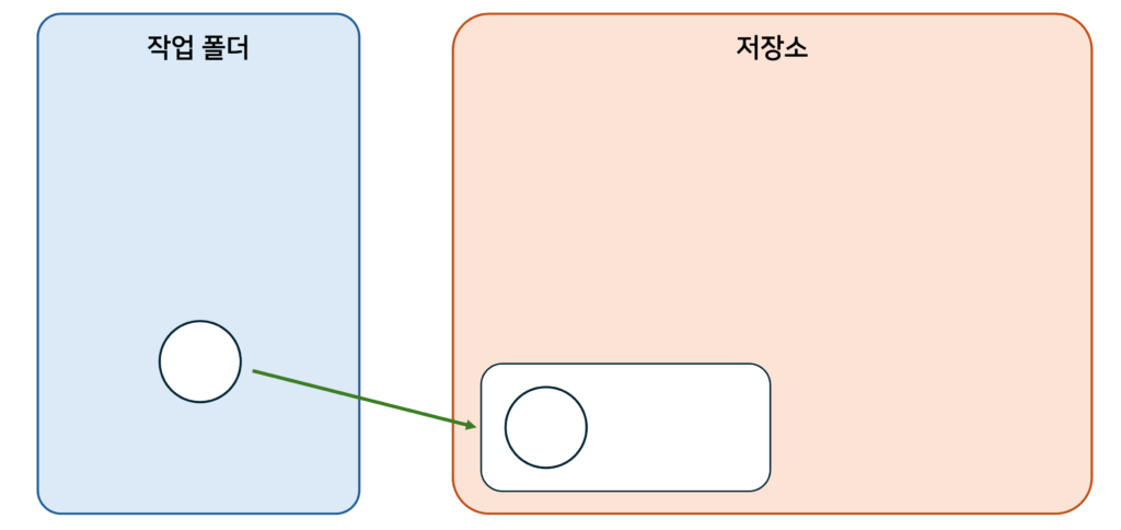 사용자가 작업 폴더에 흰색 배경 원을 그립니다. 작업 폴더에 흰색 배경의 원을 그렸을 뿐 아직 저장소에 기록하지 않았기에 저장소에는 아무것도 없습니다.