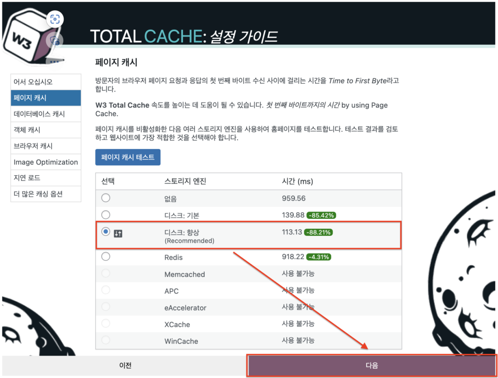 W3 Total Cache 설정 가이드 - 페이지 캐시